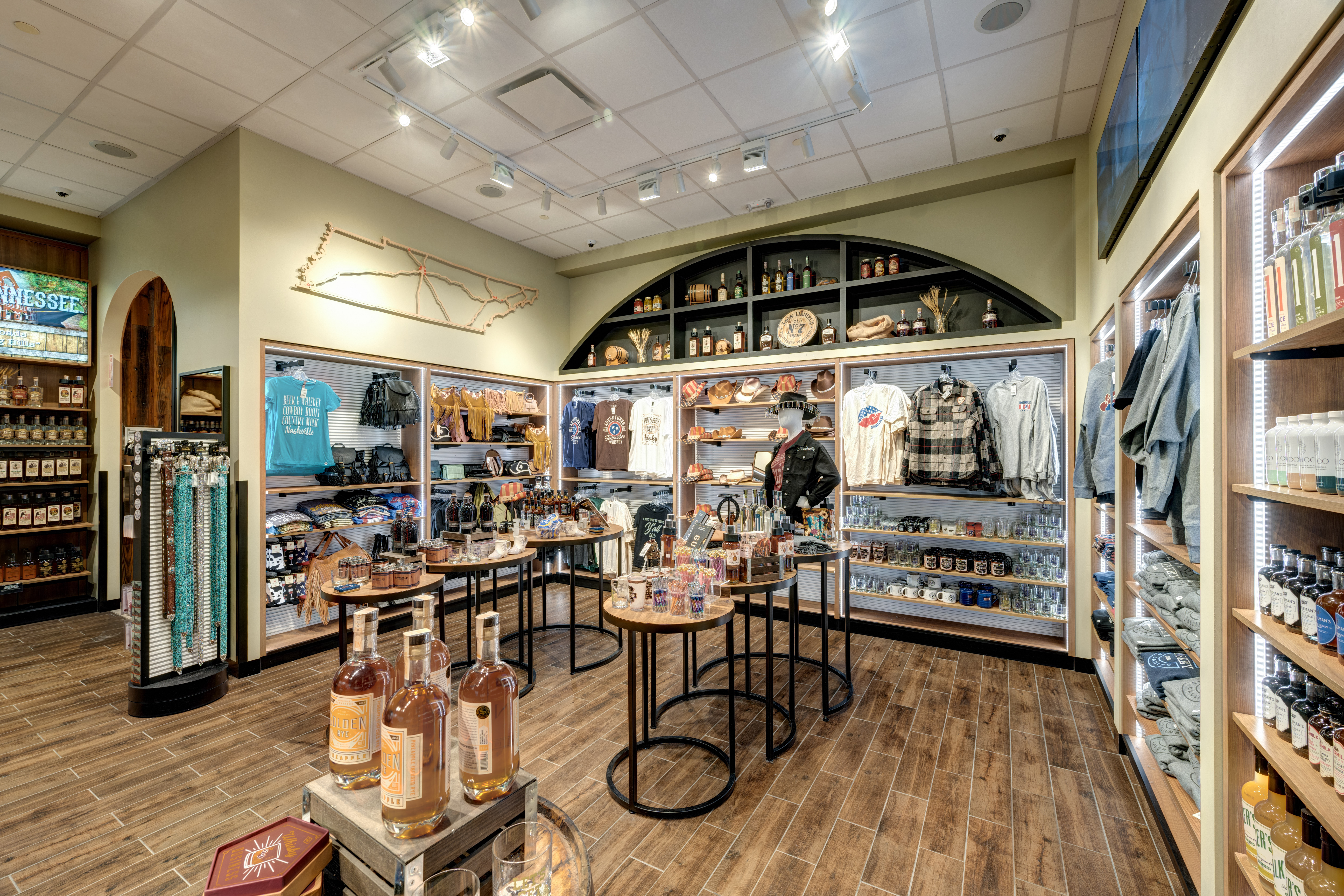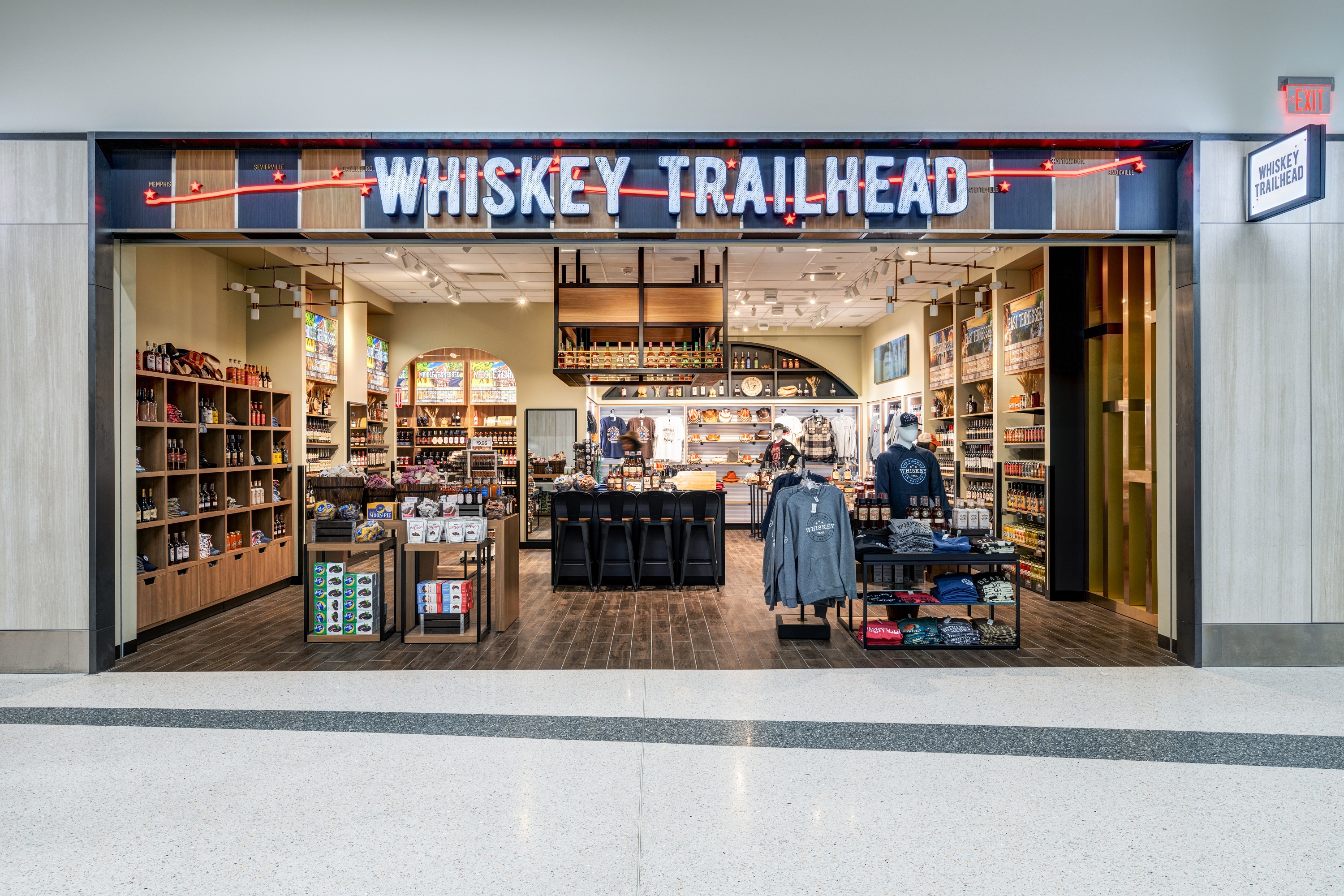 Whiskey Trailhead, a collaboration between WH Smith and LGA Partners, celebrates Tennessee’s renowned whiskey heritage in a 1,300-square-foot space. Blending rustic charm with modern sophistication, the design features a central tasting bar, bespoke retail displays, and a striking suspended liquor showcase. At its heart is a ‘Special Selections’ room, evoking the timeless allure of classic speakeasies, offering travelers a curated experience that pays tribute to the state’s storied distilling tradition.