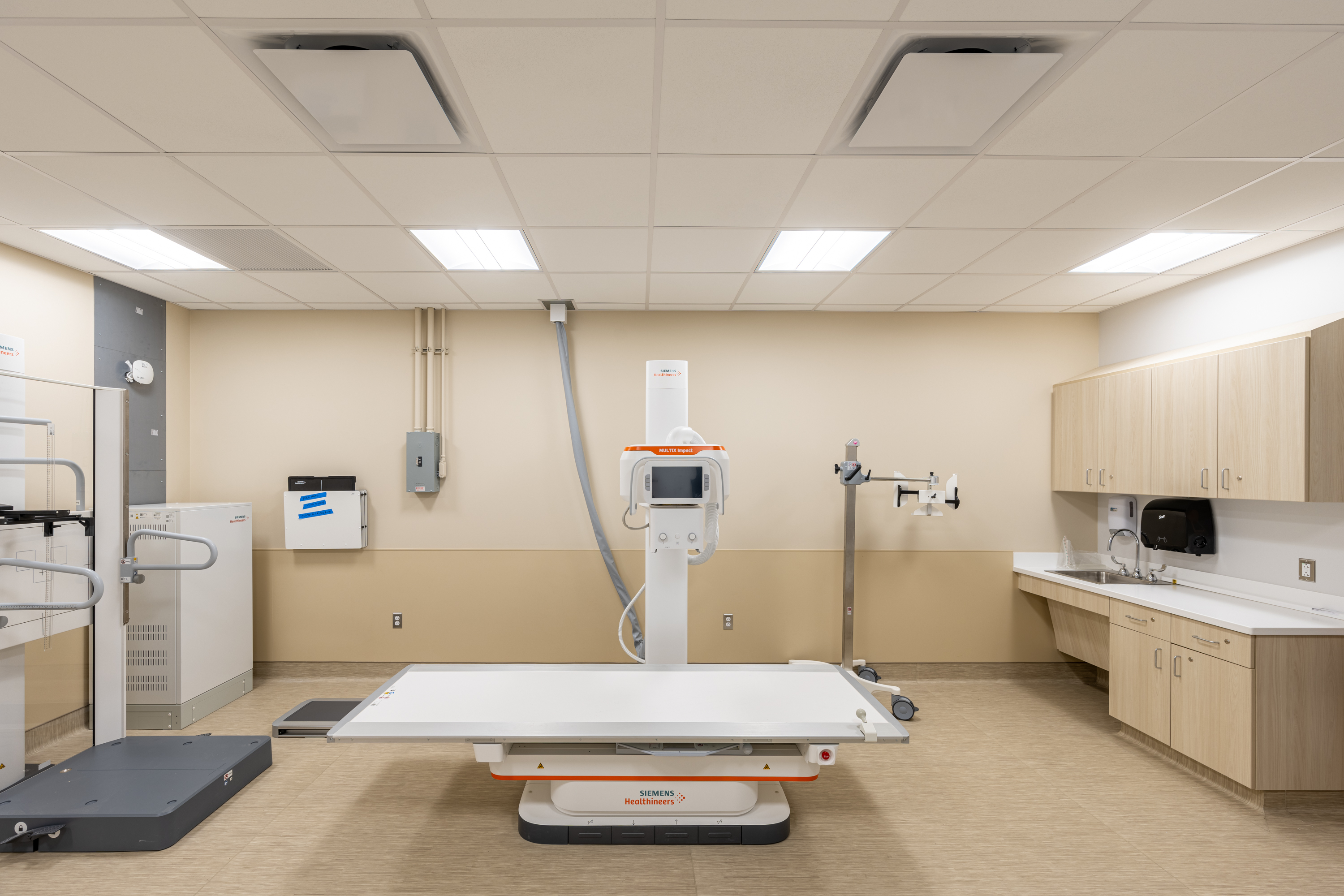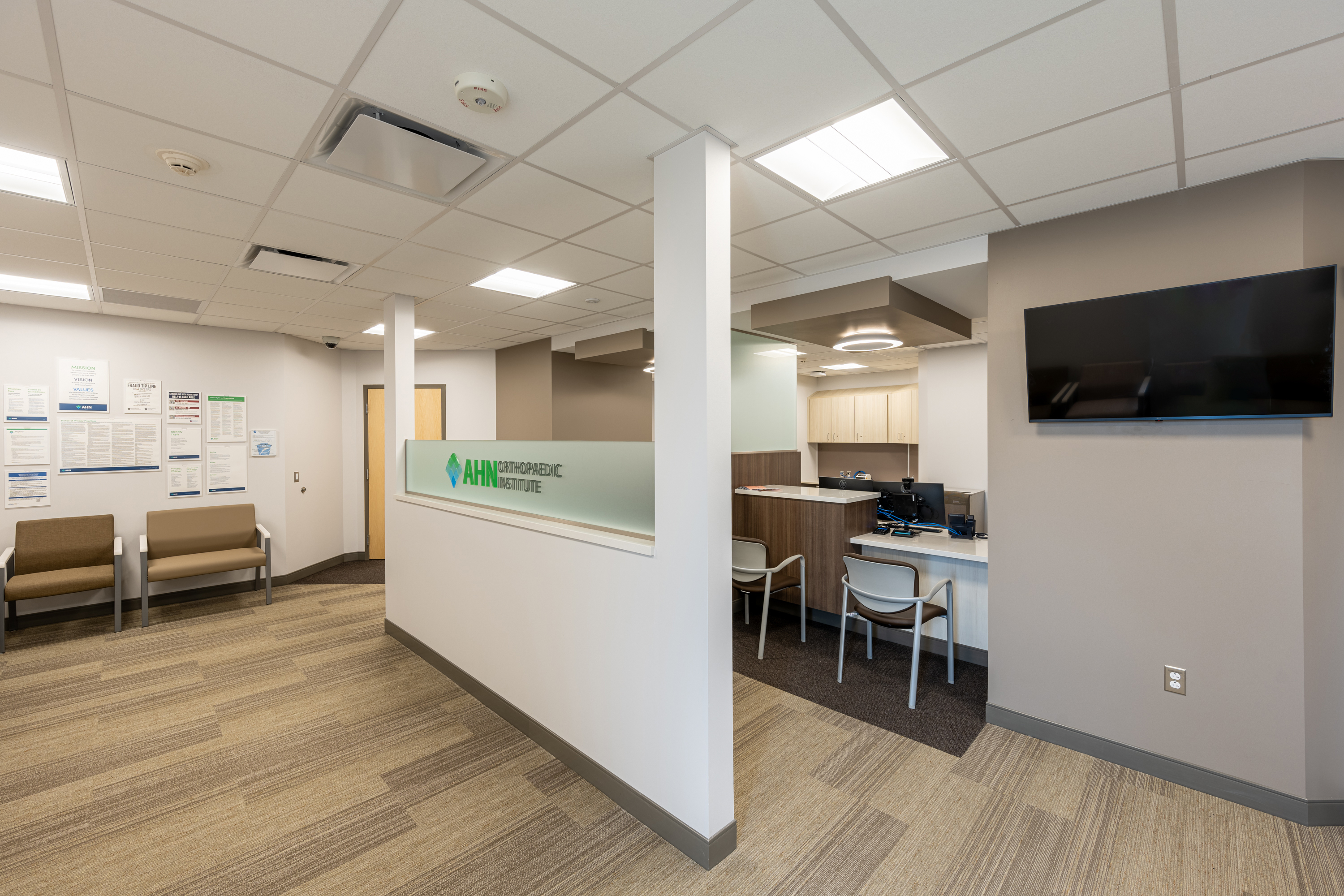 LGA Partners was tasked with transforming a portion of the existing Erie Sports Complex into a 14,300 square-foot Orthopedic and Sports Medicine Clinic for AHN St. Vincent. The design adopted a traditional racetrack layout, with exam rooms located along the perimeter and support spaces strategically placed at each end. The clinic includes a Radiology Room with an X-ray unit, exam rooms, offices, and a Physical Therapy Rehab/Gym area. Exterior improvements featured a Mobile MRI pad and utility hookups to enhance the clinic’s diagnostic capabilities. This renovation integrates seamlessly with the shared central core entrance, lobby, and public amenities, creating a modern and functional facility for patients and staff.